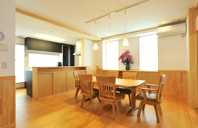 国土交通省「地域住宅モデル普及推進事業」の全建連ちきゆう住宅国産材モデルとして、全国でもわずか25件のうちの一つに認められ、その中でも、CASBEE評価(※)において最高ランクの出来栄えとなりました。快適に気持ちよく、そして世代を超えた住まいづくりは、東濃檜や紀州杉などの国産木材にこだわるだけでなく、太陽光発電や雨水タンクを備え付け、環境に優しく自然の恵みを大切にした省エネルギー住宅となっています。